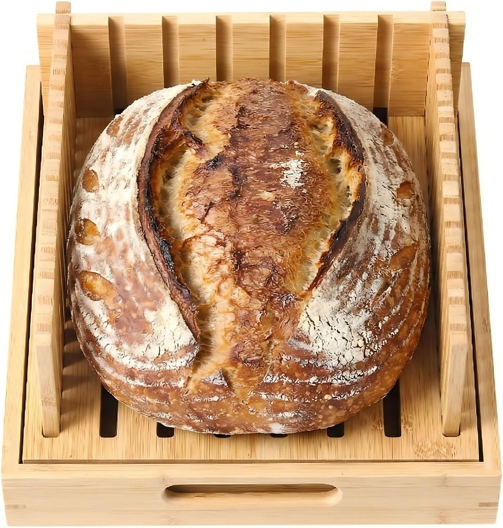 10.5" Bread Slicer for Sourdough - Bamboo Homemade Bread Cutter Guide with Crum